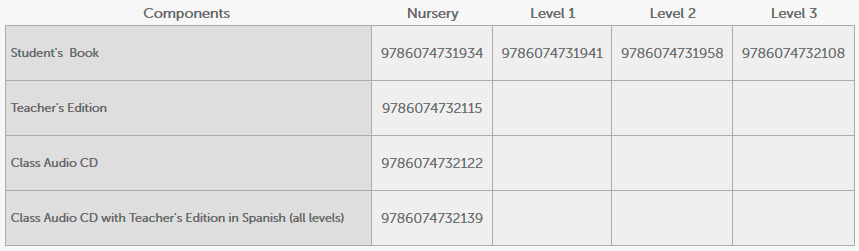 - The back of the Student’s Book contains cut-out material for each unit, as well as four seasonal activities for each level, corresponding to the festivals of Halloween, Christmas, Mother’s Day and Father’s Day.