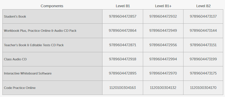 - The Teacher's Book includes comprehensive teaching notes, a CD containing editable tests, and a resource pack with communicative practice of language and skills for each unit, in addition to a 'Can do' self-evaluation table for use after each unit.