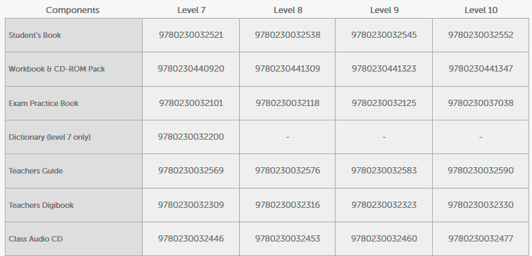 The four secondary levels (7-10) begin at A2+ and build on the systematic language development and consistent approach to skills covered by levels 1-6, while also developing important real world skills. Comprehension activities place an emphasis on students' personal responses and include critical thinking questions.