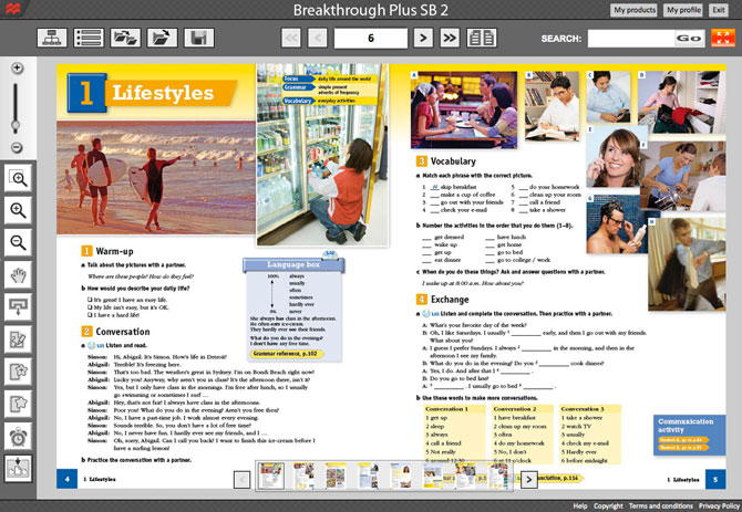 Breakthrough Plus is a flexible, multi-skills course that builds young adult and adult learners’ confidence to help them express themselves in English. It provides a supportive environment for students to develop at a pace they feel comfortable with. Appealing content, a fresh design, and a digital version of the Student Books for classroom presentation and additional practice with gradebook functionality, combine to create a truly blended, content-rich program, covering high-interest themes in a thorough but accessible way.