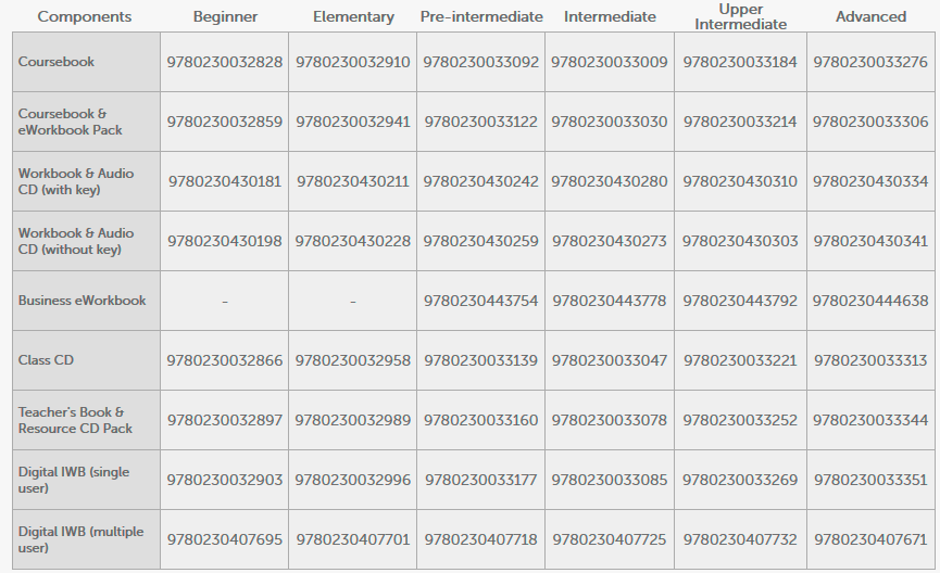 Global is a six-level general English course, taking adult learners from Beginner to Advanced level. It is information-rich, sophisticated in both presentation and approach, with international appeal, combining challenging content, intelligent topics and cross-cultural awareness, and features none of the celebrity-driven lifestyle content often found in typical general English courses for adults.