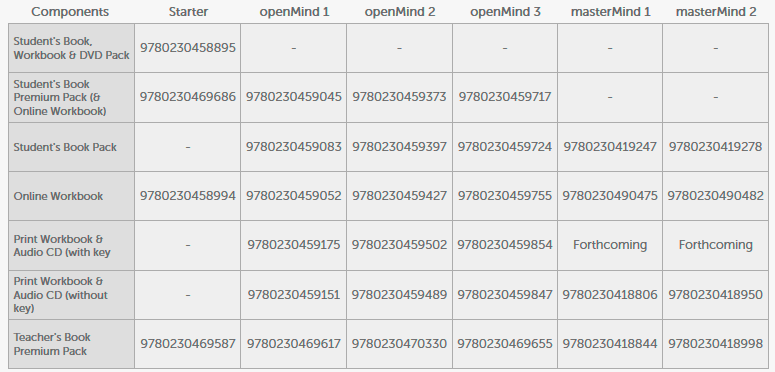 Niveles: Starter - OpenMind1 - OpenMind 2 - OpenMind 3 - MasterMind 1 - MasterMind 2